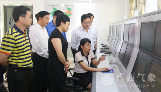 5月18日,中国气象局副局长矫梅燕率预报与网络司副司长杨引明、气象信息化领导小组办公室常务副主任曾沁一行,在自治区气象局局长刘家清的陪同下,到崇左市气象部门开展基层气象工作调研。